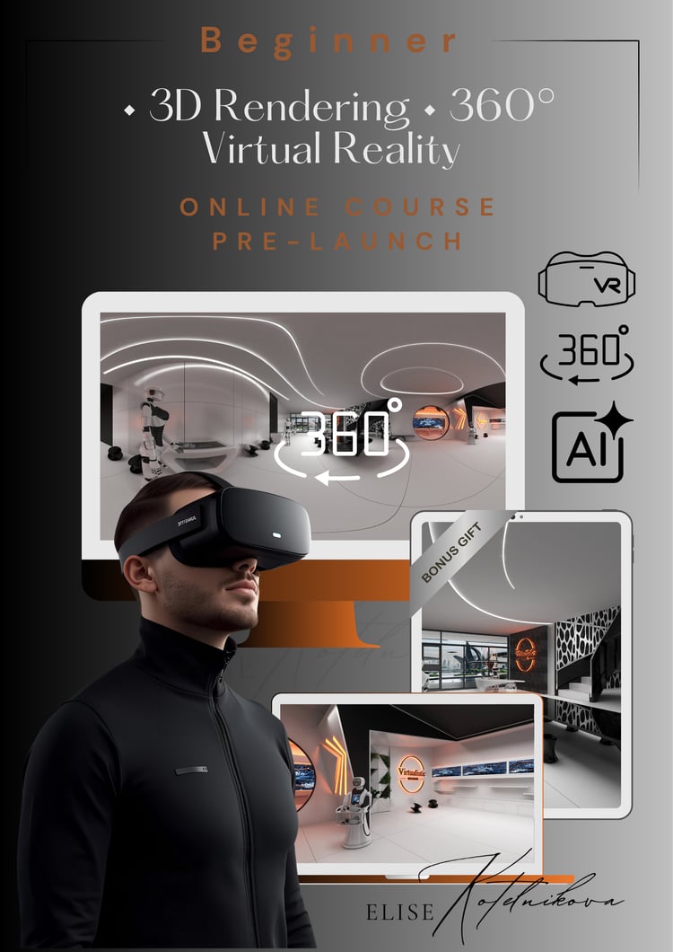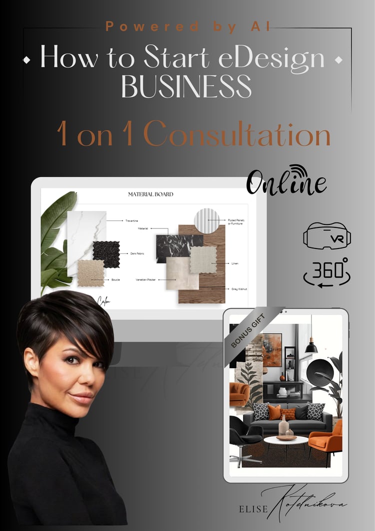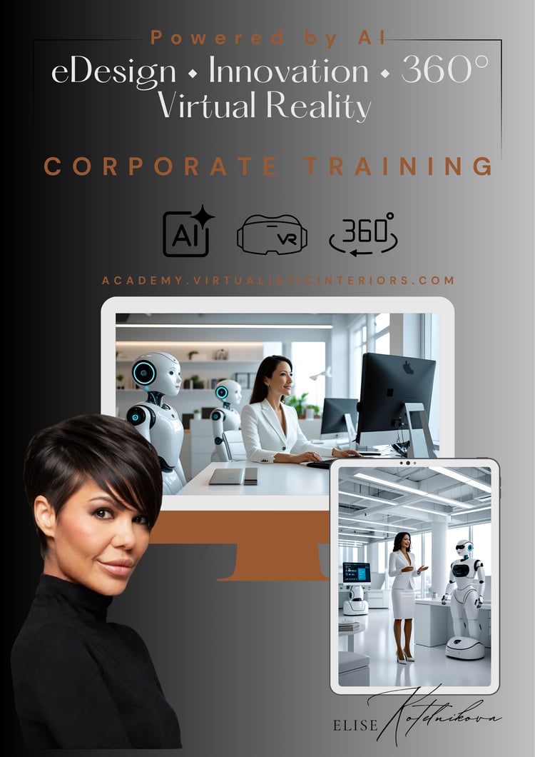 Elise Kotelnikova is the founder of Virtualistic Interiors and a leading educator in eDesign, 3D, powered by AI, and immersive 360°/Virtual Reality presentations. After running a successful design studio in Las Vegas and working on projects across the USA, UAE, and internationally, she now focuses on teaching and corporate training.